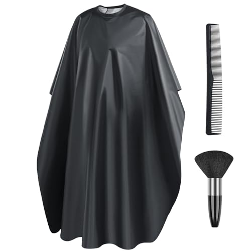 LOPHE Hairdressing Gown Barbers Cape, Black Salon Cape Apron with Neck Duster Brush and Hairdressers Comb, Waterproof Unisex Cutting Gowns for Hair Styling, Cuts and Colours, Barber Accessories, A