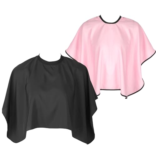 UESDU 2PCS Hairdressing Cape, Barber Cape Short Hair Dye Cape Waterproof Makeup Cape Adjustable Hair Cutting Apron Haircut Gown Fits All Neck Size