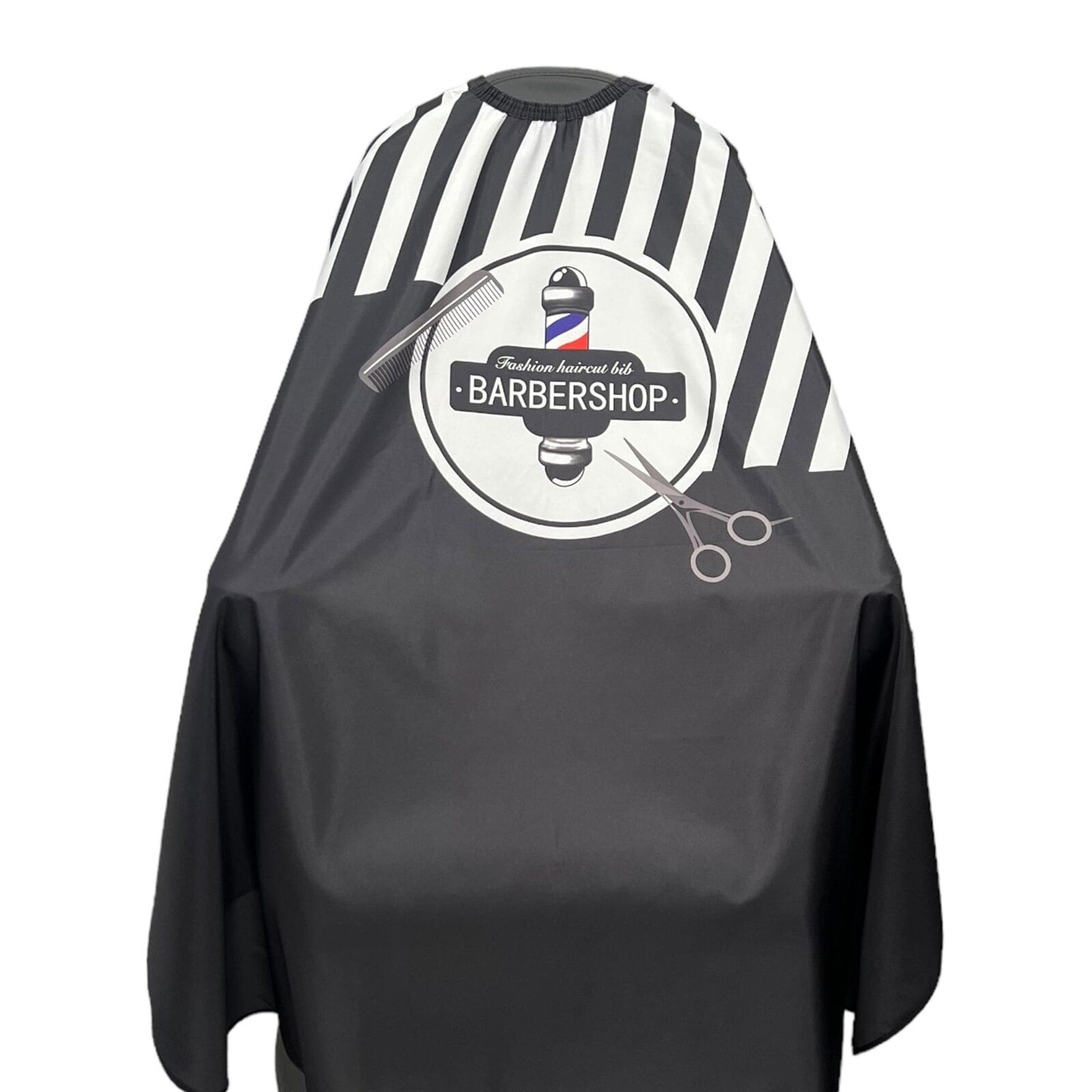 Gabri - Barber Hairdressing Hair Cutting Cape & Gown Barber Pole Pattern (Black)