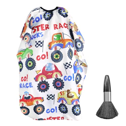 YDHfdc Kids Hairdressing Cape Cartoon Car Barber Cape 130 x 90cm Hair Cutting Cape Adjustable Neckline Hairdressing Gown with Neck Duster Brush for Boys Girls