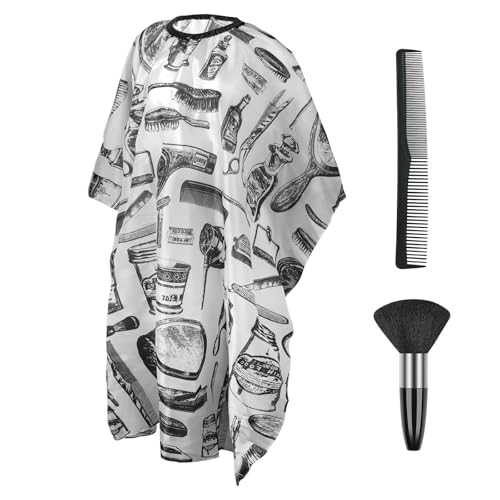 LOPHE Hairdressing Gown Barbers Cape, Salon Cape Apron with Neck Duster Brush and Hairdressers Comb, Waterproof Unisex Cutting Gowns for Hair Styling, Cuts and Colours, Barber Accessories, B
