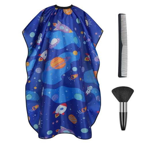 AYBUY Kids Hairdressing Gown Barbers Cape, Blue Space Cutting Gowns with Neck Duster Brush and Hairdressers Comb, Waterproof Children Salon Cape Apron, Barber Accessories
