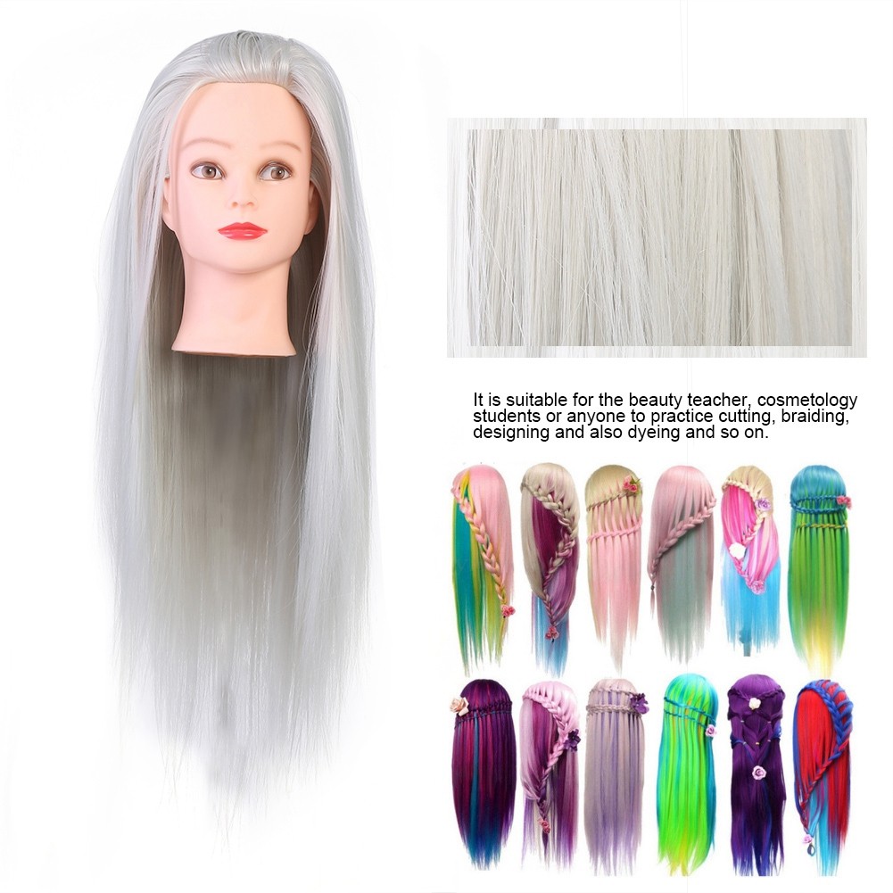 (Gray)Hair Salon Cosmetology Hairdressing Practice Head Mannequin Dolls Salon