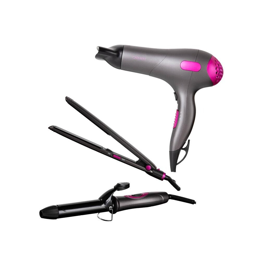 Carmen 1800W DC Hairdryer / 25mm Curling Tong / Hair Straightener Neon Pink / Graphite UK Plug