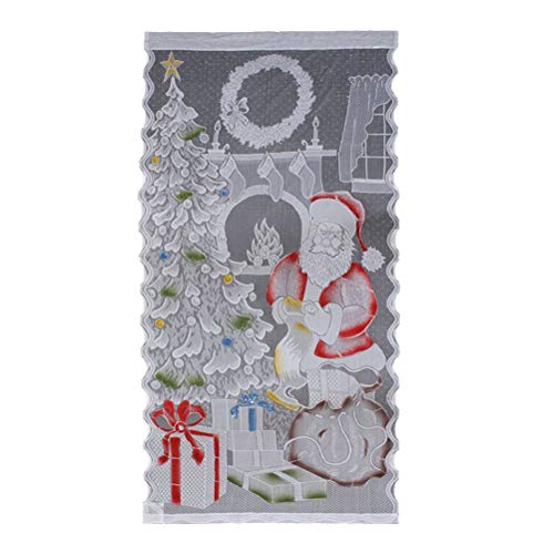 SUPYINI Lighted Christmas Tree Curtain Panel LED Lace Xmas Tree Window Door Curtains Decoration Festive Santa Claus Half Blackout Curtains for Holiday Party Decor (52)