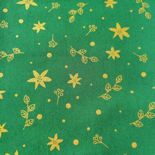 Christmas Fabric – 100% Cotton Printed Fabric – Festive Holiday Xmas Tree Material – 44” Wide – Ideal for Quilting, Crafts & Sewing Projects (Metallic Gold Sprigs on Green, Half Metre)