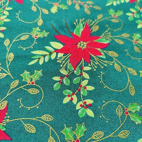 Christmas Fabric – 100% Cotton Printed Fabric – Festive Holiday Xmas Tree Material – 44” Wide – Ideal for Quilting, Crafts & Sewing Projects (Red Poinsettia on Green, Half Metre)