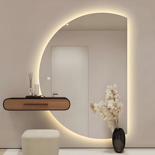 Dijateman Dimmable Backlit Vanity Mirror, 3 Colors, with Antis-Fog Touch Switch, 90-130cm Entryways Half Circle Full Length Mirror for Home Decor(Right cut,51 * 35inch)