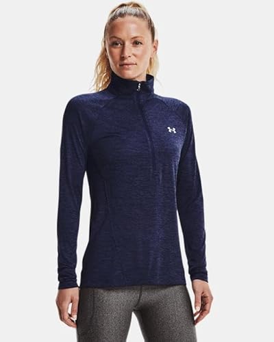 Under Armour Women's Tech Half-Zip Twist, Women's Gym Wear Made from Super-Soft, Fast-Drying Material, Half-Zip Top with Odour Control Technology,Midnight Navy / / White,SM