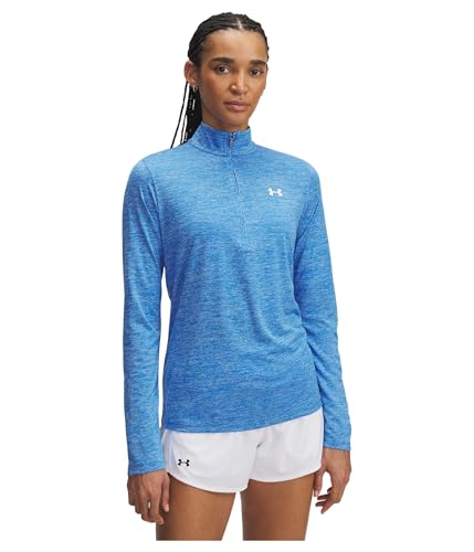Under Armour Women's Tech Half-Zip Twist, Women's Gym Wear Made from Super-Soft, Fast-Drying Material, Half-Zip Top with Odour Control Technology,Blue Atlantis / / White,MD
