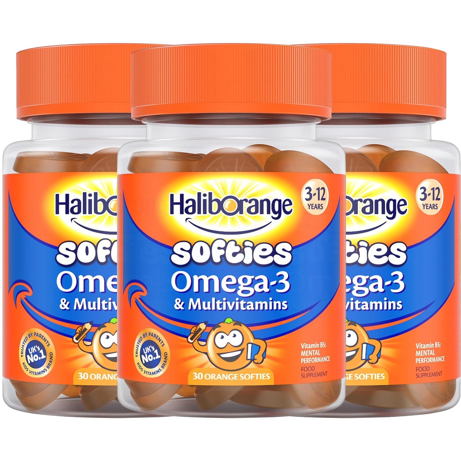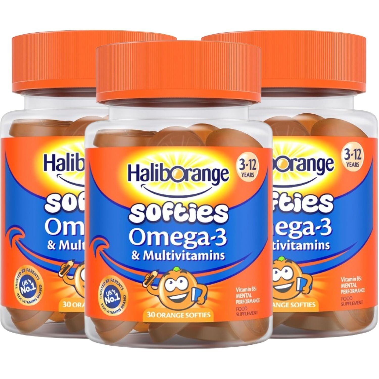 3 x Haliborange Omega-3 and Multivitamins 30 Orange Flavour Softies For 3-12 Age