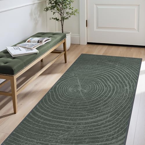 GENIMO Boho Swirl Bathroom Runner, 80 X 150 cm Washable Runner Rug Corridor Area Rugs Long Floor Hall Kitchen Carpet, Modern Morandi Green