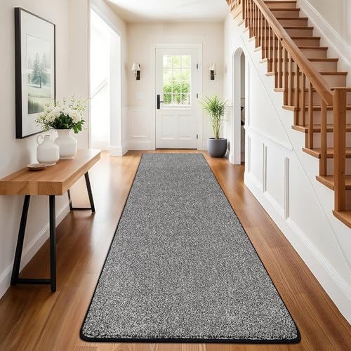 Nisorpa Carpet Runners for Hallways 90x300cm Hallway Runner with Non Slip Back Dirt Stopper Extra Long Hall Runner Washable Runner Mat for Home office Kitchen Gray