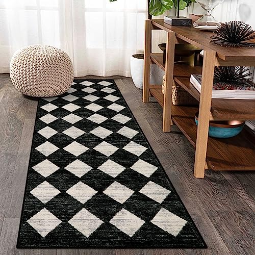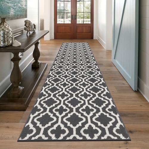 Lahome Moroccan Trellis Runner Rug - 2x6 Washable Black Bathroom Runner Rug Laundry Room Carpet Runner, Modern Soft Non Slip Indoor Floor Accent Mat for Bedside Kitchen Hall Bar Entryway RV
