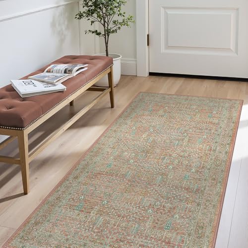 GENIMO Persian Hallway Runner, 80 X 150 cm Corridor Area Rugs Long Floor Carpet Hall Kitchen Bathroom Washable, Vintage Pink Teal