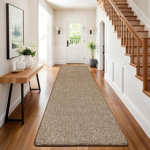 Enyhom Carpet Runners for Hallways Non Slip, 80 x 300 cm Long Kitchen Floor Runner Machine Washable Hall Runners for Hallway Entryway Corridor,Khaki