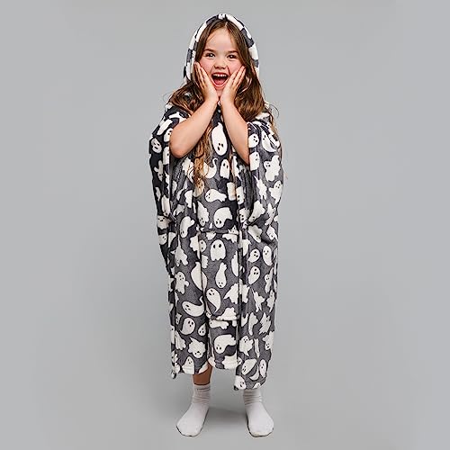 OHS Blanket Hoodie Kids Boys Girls Neon Pumpkin Halloween Blanket Winter Warm Sherpa Fleece Oversized Wearable Blankets Comfy Cosy Halloween Hoodie Gifts for Kids, Black - One Size