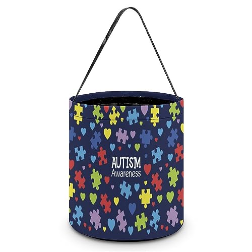 FJQWKLF Autism Awareness Month Halloween Bucket Trick Or Treat Tote Candy Basket for Kids Halloween Party Home Decorations