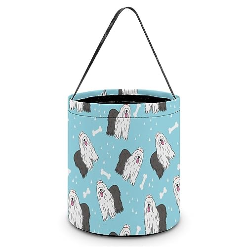 FJQWKLF Old English Sheepdog Pattern Halloween Bucket Trick Or Treat Tote Candy Basket for Kids Halloween Party Home Decorations