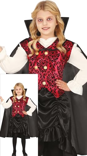 FIESTAS GUIRCA Classy Vampire Girls Fancy Dress Costume - Burgundy Vampiress Costume including Cape, Shirt, Vest and Skirt - Halloween Girls Costumes Age 7-9 Years