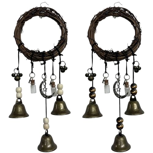 Hilai 2Pcs/Set Witch Bells 13.8 Inch Hanging Witch Decor with Witchy Pendant Decorative Bells for Door Knob, Porch, Garden, Window, Halloween Decorations, Garden Tools