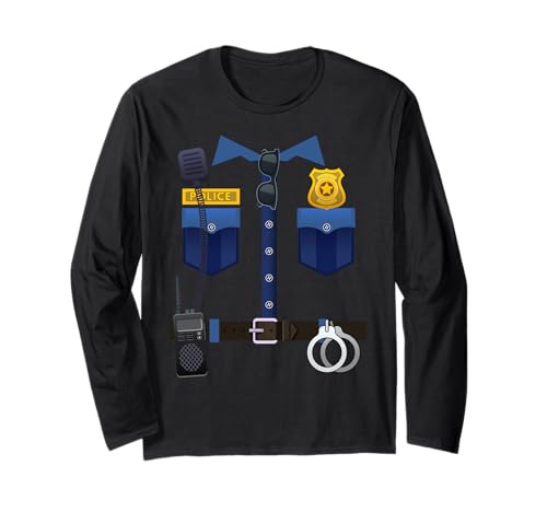 Halloween Policeman Police Officer Costume Boys Girls Long Sleeve T-Shirt