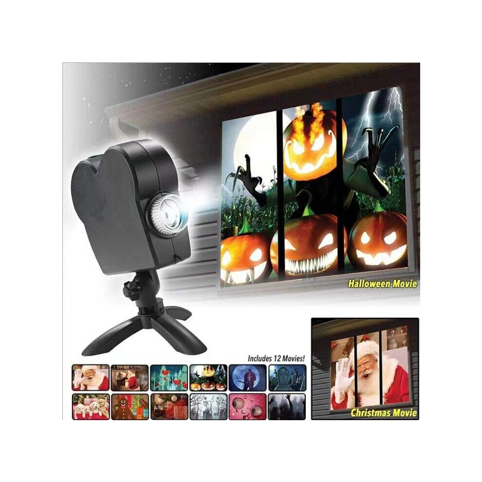 UK Holidays Window Projector - 12 Holiday Movies (6 Christmas & 6 Halloween) with Adjustable Screen and Tripod