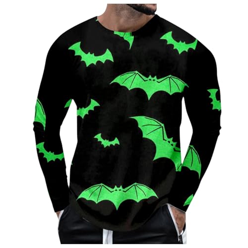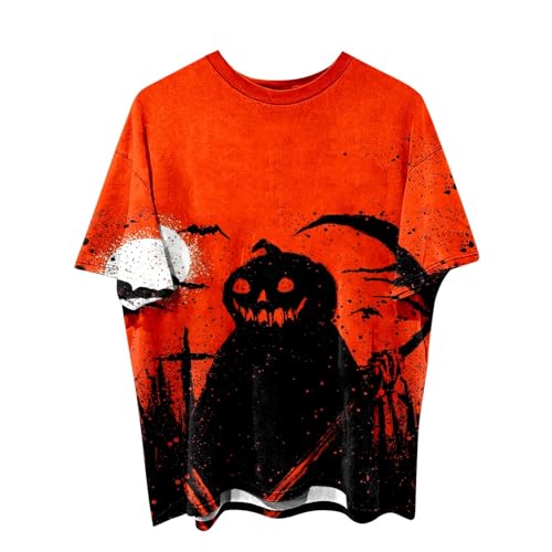 Mens Halloween Shirts T Shirt Designer, Funny Fashion Breathable Plus Size Holiday Party Dance Comfortable Ghostly Crew Neck Oversized Casual Horror Prints Tops for Celebrations Performances