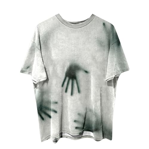 Punk T Shirts Men Halloween Mens T-Shirts, Casual Breathable Crew Neck Short Sleeve Oversized Fashion Ghostly Horror Prints Dance Funny Holiday Party Comfortable Tops for Celebrations Performances