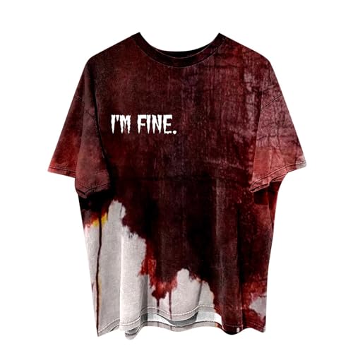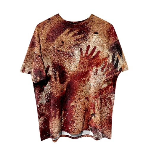 Mens Halloween T Shirt Shirts for Men Uk, Crew Neck Bloody Theme Funny Holiday Party Casual Oversized Dance Short Sleeve Fashion Breathable Comfortable Horror Prints Tops Celebrations Performances