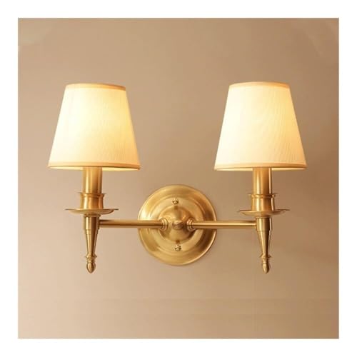 MOCHAMIK Vintage 2-Light Wall Sconce Brushed Brass Indoor Wall Lamp with Fabric Shades Double Head Vanity Light Fixture for Bedroom Bathroom Study Hallway E14 Compatible