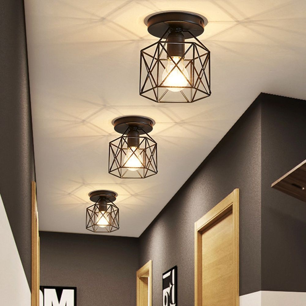 Flush Mount Ceiling Light For Hallway, Track Lighting Fixtures With E26 Base, Wall Light Fixture With Metal Cage Shades And Dimmer Compatible For