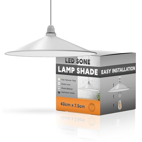 LEDSONE Retro White Light Shade Ceiling, Cone 40cm Metal Lampshades for Ceiling Lights, Industrial Easy Fit Pendant Lamp Shades for Table Lamps, Living Room, Bedroom, Kitchen, Hallway, Home Décor