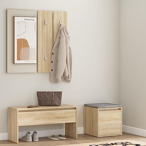 Tonture Sonoma Oak 5-Piece Wardrobe Set with Hallway Bench, Mirror, Coat Panels and Storage Box, Ideal for Hallway and Entrance Area
