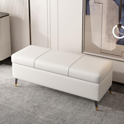 LWJSOCP Stylish Faux Leather Footstool Bed End Bench with Large Storage Space, Functional Hallway Ottoman & Window Seat Storage Chest for Home Décor & nization