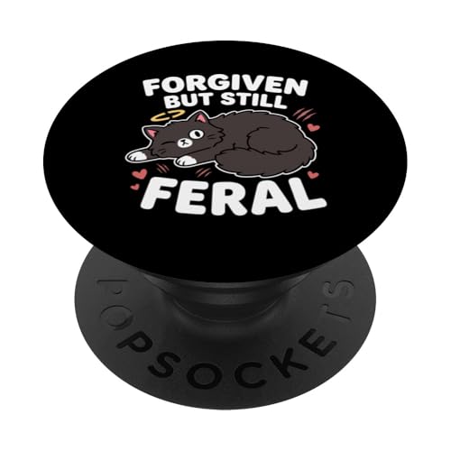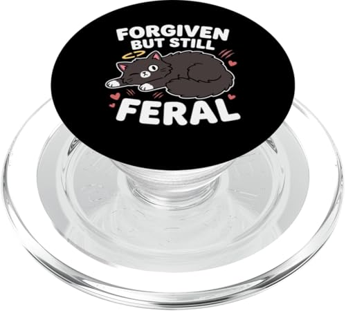 Forgiven But Still Feral Black Cute Cat Kawaii Halo Art PopSockets Adhesive PopGrip