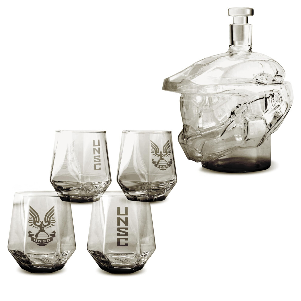 The Source Wholesale Halo Master Chief Glass Decanter and 4 Tumbler Glasses Collectable Drinking Set
