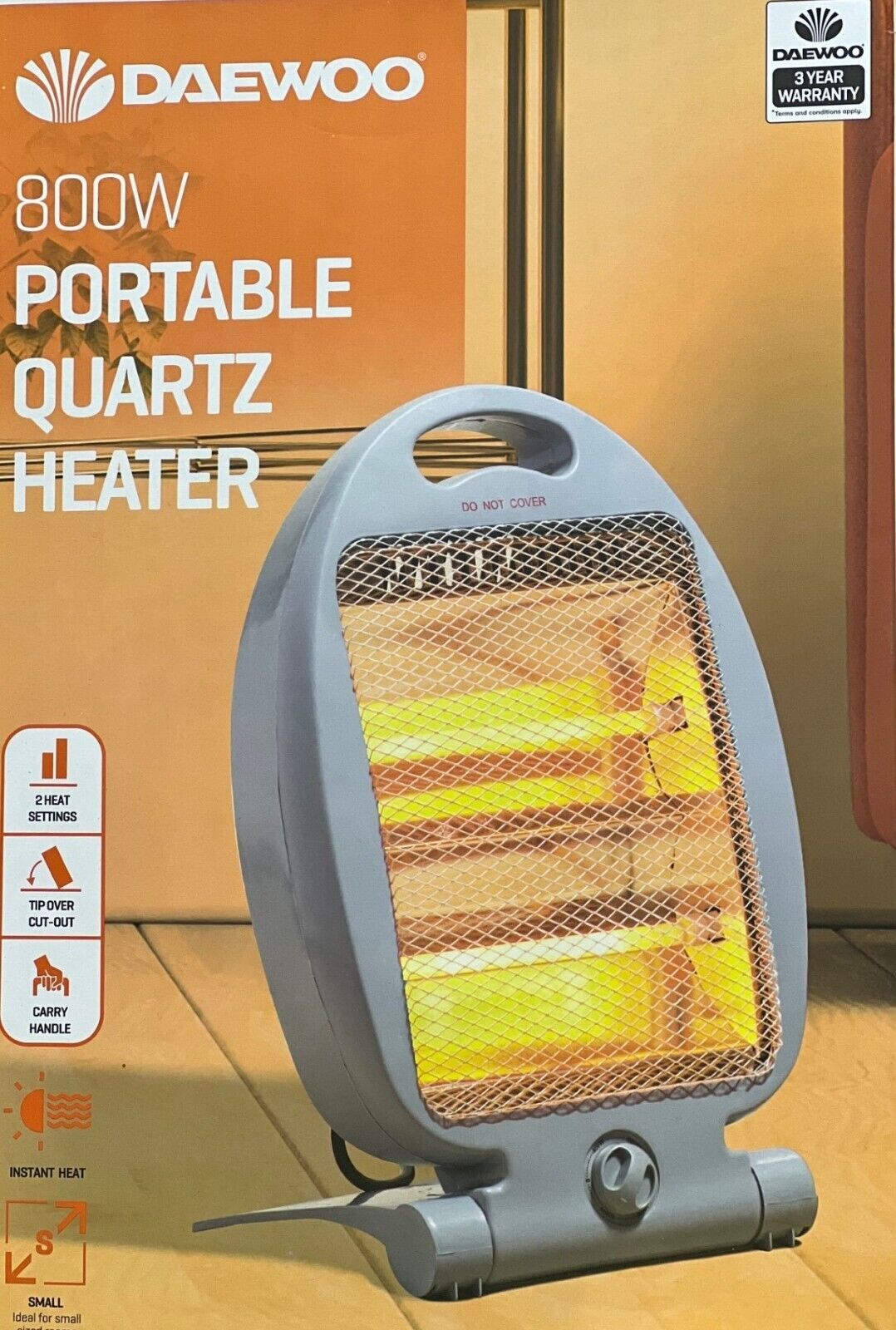 Daewoo 800W Small Quartz Halogen Heater With 2 Heat Settings Home Office Grey