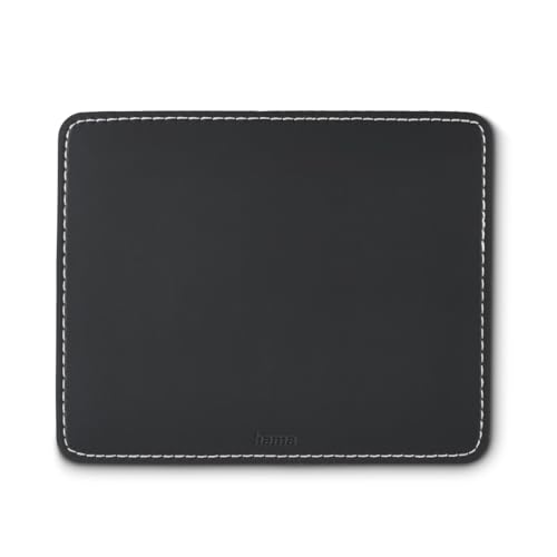 Hama Mouse Pad (Computer Mouse, Natural Rubber, Rubber Bottom, Optical Laser Mouse, 22 x 18 x 0.3 cm, Elegant Leather) Black