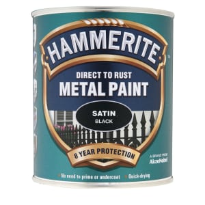 Hammerite 5092829 Direct to Rust Satin Finish Metal Paint Black 750ml HMMSATBL75