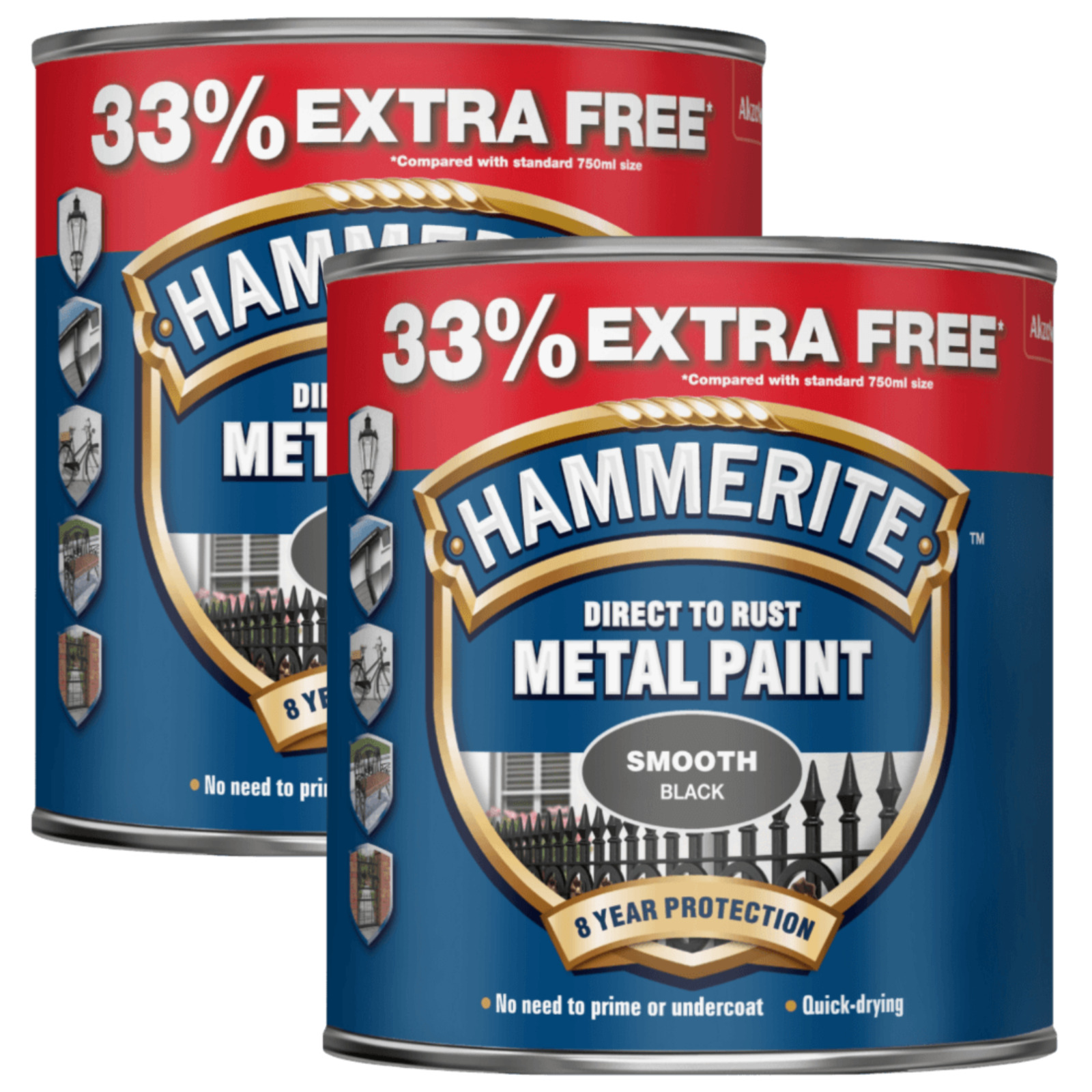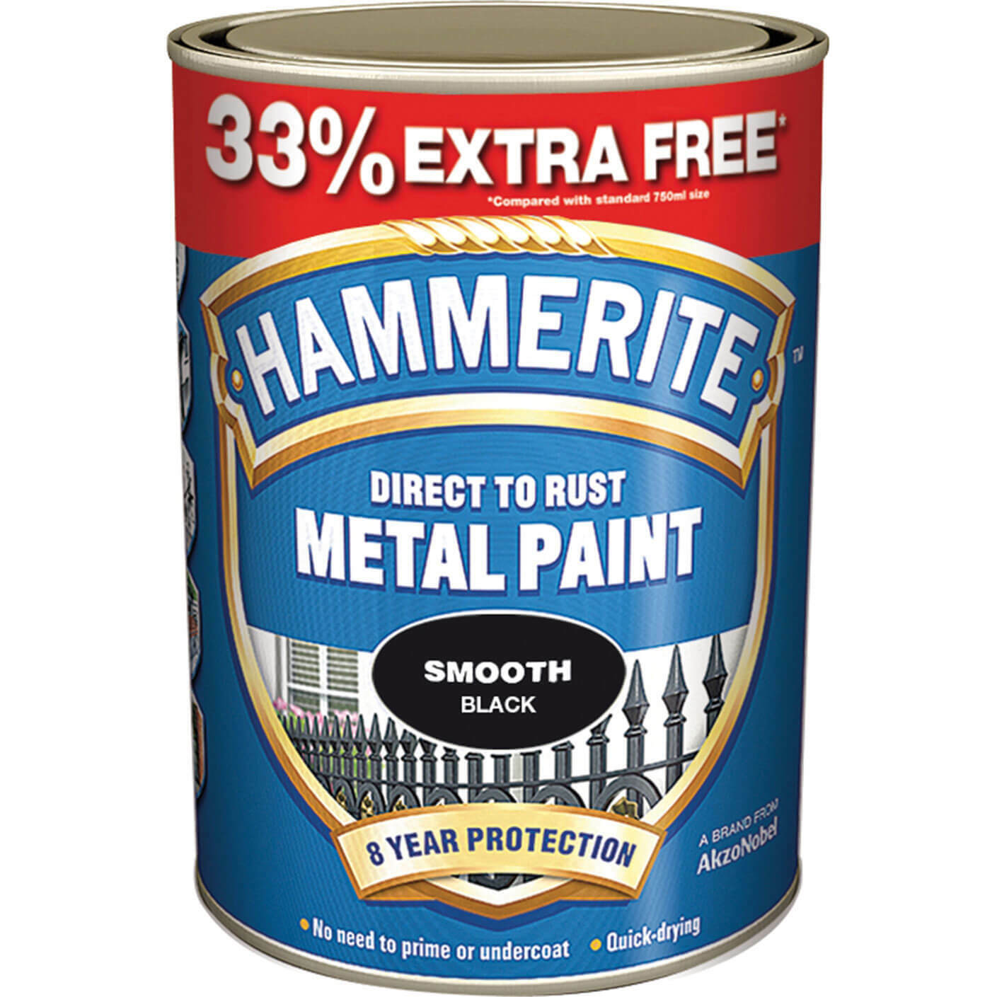 Hammerite - Smooth Direct To Rust Metal Paint - 750ML + 33% Extra Free - Black