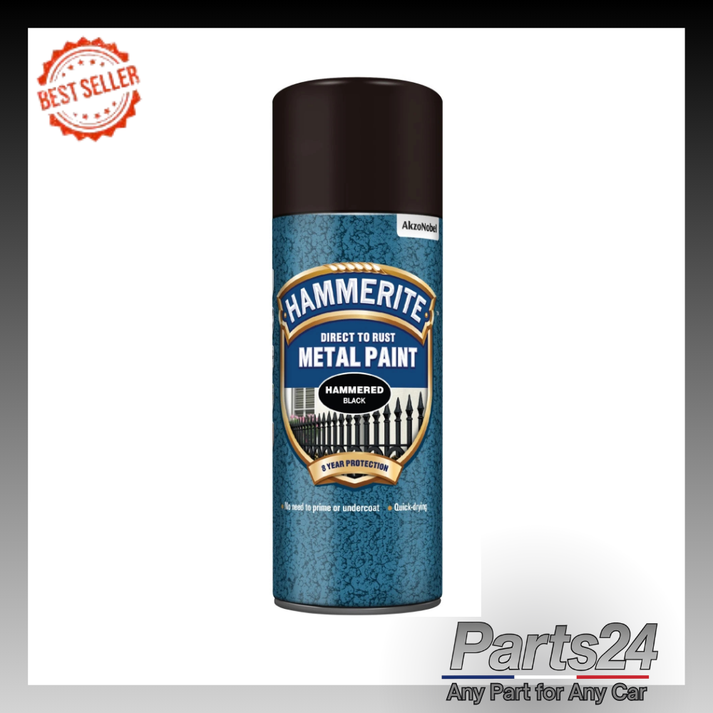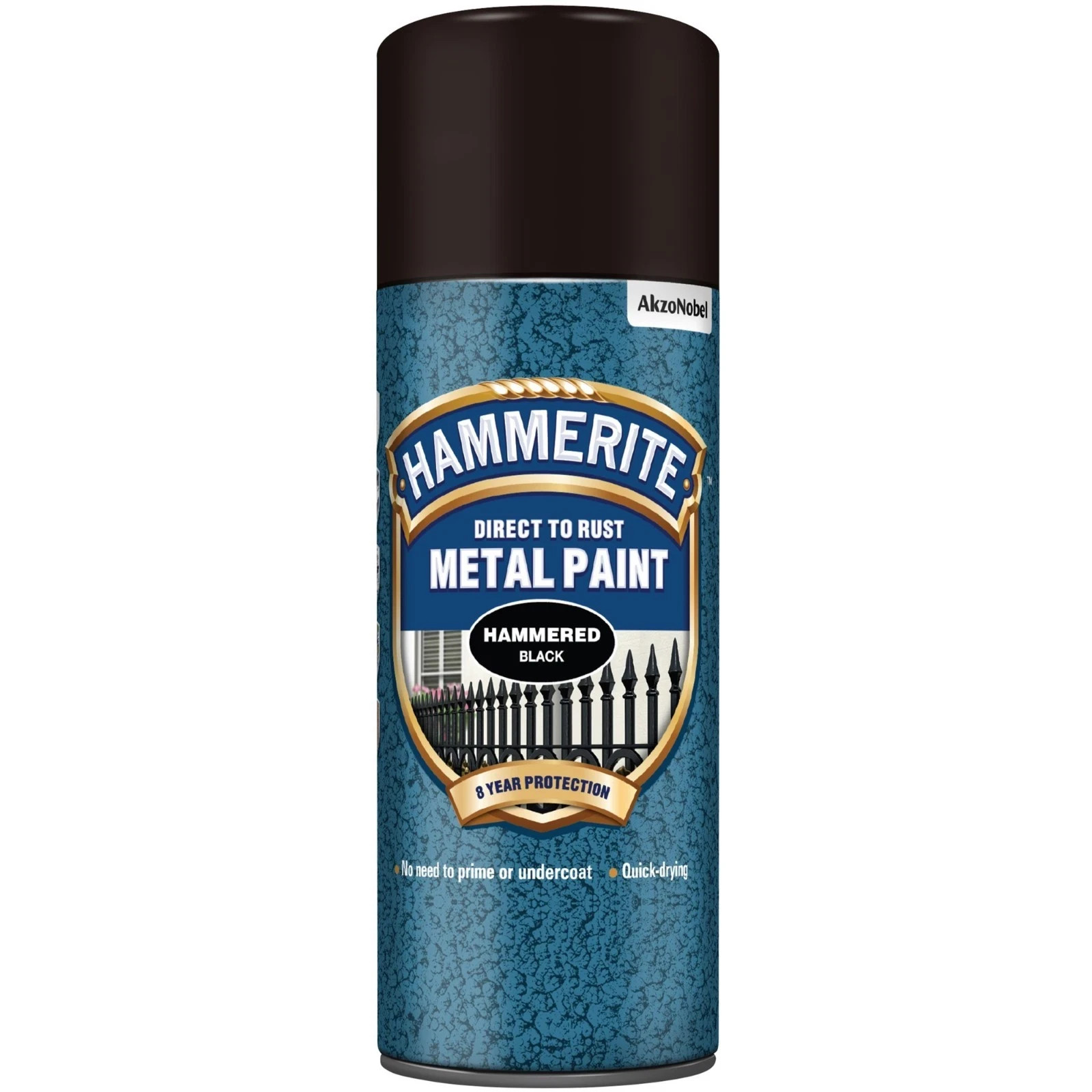 Hammerite Spray Paint for Metal. Direct to Rust Exterior Black Metal Paint, Hammered Finish. Corrosion Resistant Black Paint and Rust Remover, 8 Year Protection - 400ml Aerosol 0.5 SqM Coverage