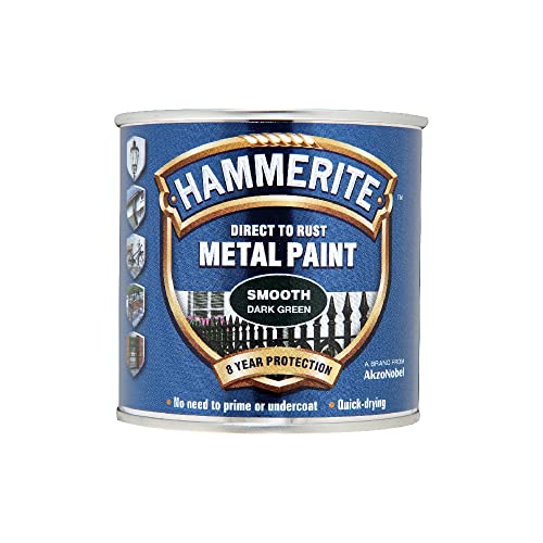 Hammerite Paint Direct to Rust Exterior Gloss Dark Green Metal Paint, Smooth Finish and Corrosion Resistant. Paint and Rust Remover, 8 Year Protection - 250ml Tin 1.25 SqM Coverage