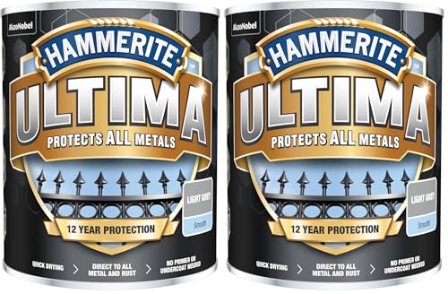 Hammerite Ultima Metal Paint Smooth Finish Light Grey 750ml – Advanced Protection, Direct to Rust, Water-Based, Durable Exterior Coating (Pack of 2)