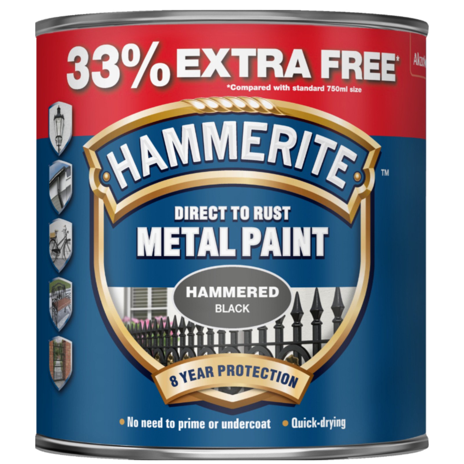 Hammerite Metal Paint Hammered - Black - 750ml - 33% EXTRA FREE 1L Tin