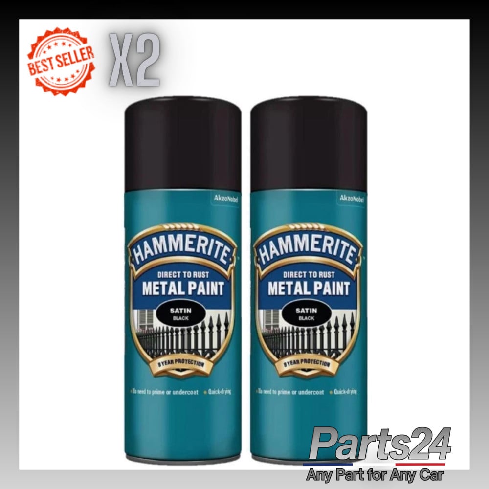 2x Hammerite Satin Black Paint Direct To Rust Quick Drying Metal Paint 400ML
