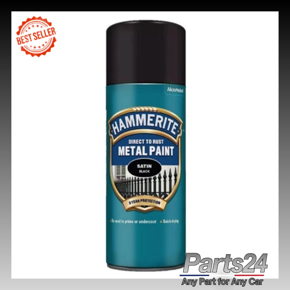 Hammerite Spray Paint for Metal. Direct to Rust Exterior Black Metal Paint, Satin Finish. Corrosion Resistant Black Paint and Rust Remover, 8 Year Protection - 400ml Aerosol 0.5 SqM Coverage
