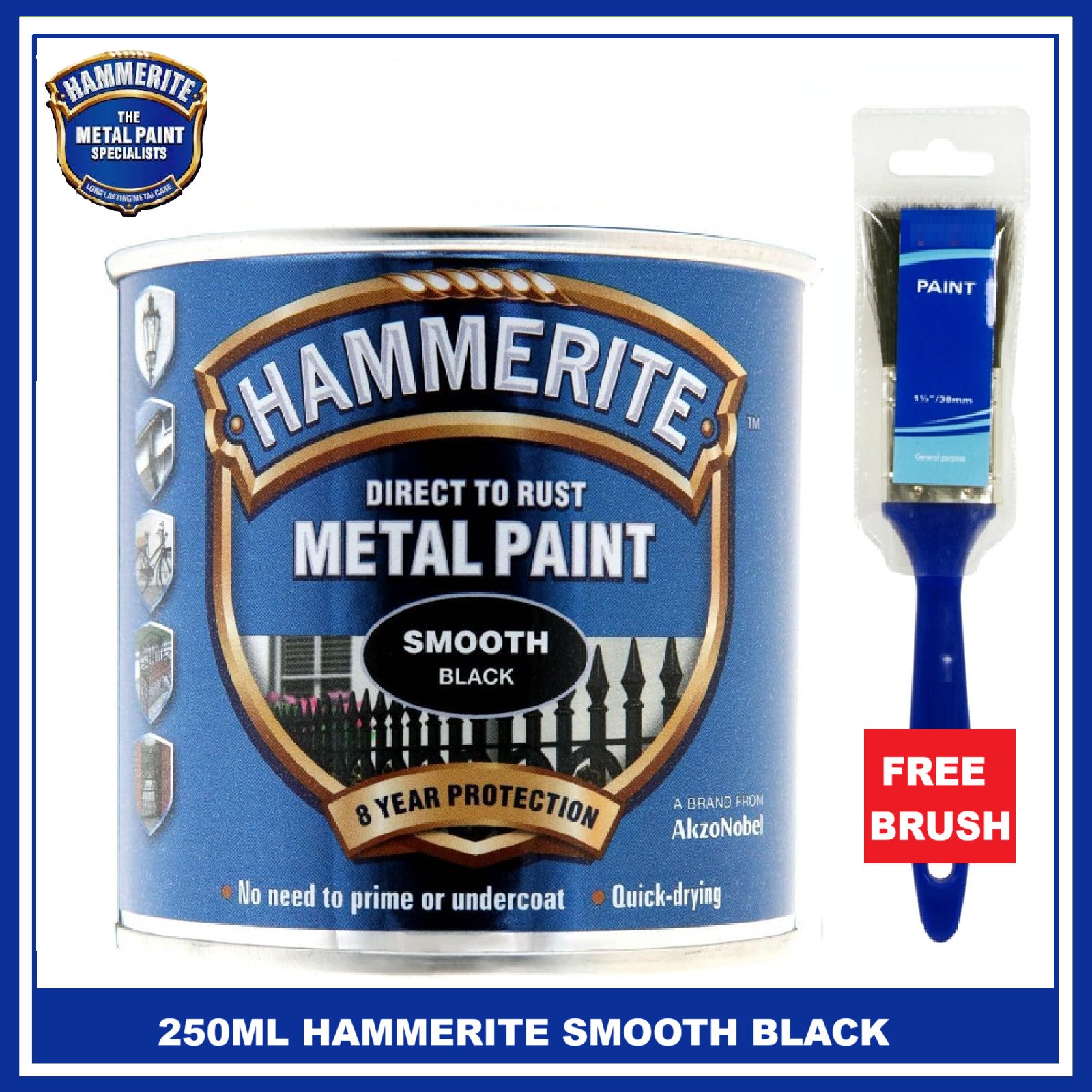 Hammerite Smooth Black Direct to Rust Metal Paint 250ml + FREE BRUSH