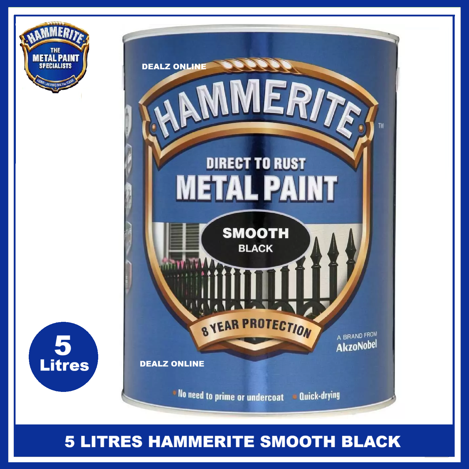 Hammerite Smooth Black Direct To Rust Metal Paint 5L
