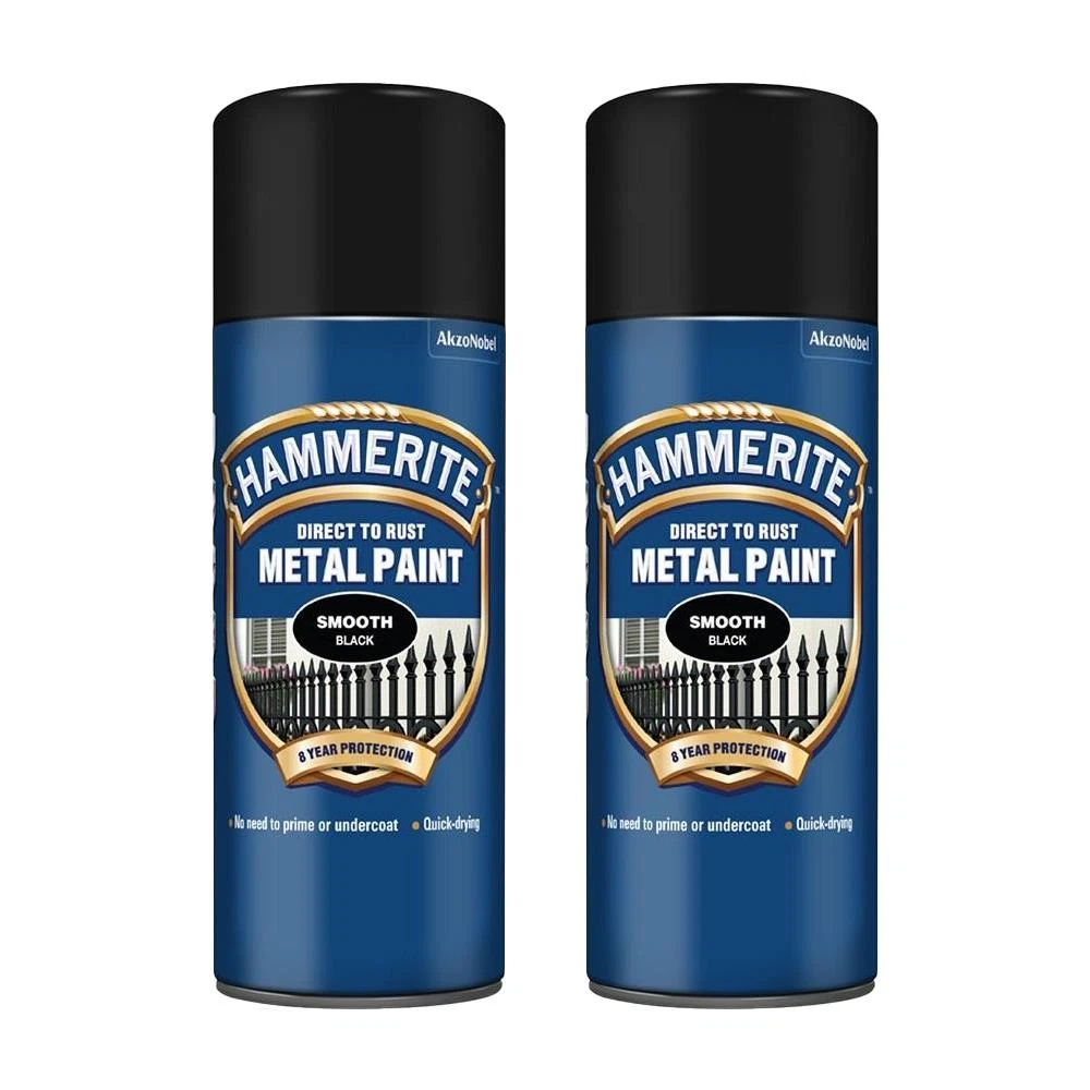 2x 400ml Hammerite SMOOTH BLACK Direct to Rust Metal Spray Paint Aerosol 400ml